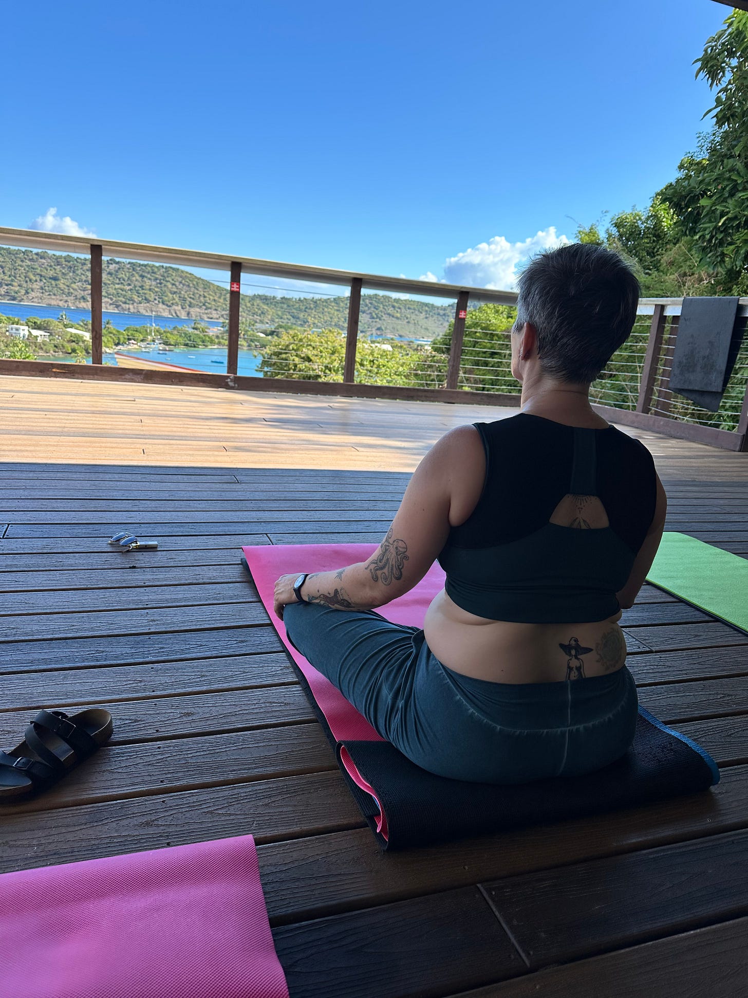 This morning, Kelly and I rolled out our mats on the pool deck at Margaritaville St. Thomas for a yoga session with The Underbelly Yoga led by Jessamyn Stanley. (Side note: if you haven’t experienced her yet, do yourself a favor—life-changing.)